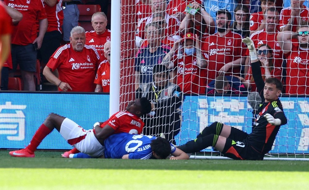 Kale direğine çarpan ve acı içinde yerde kalan Awoniyi karşılaşma sonrası hastaneye götürüldü.