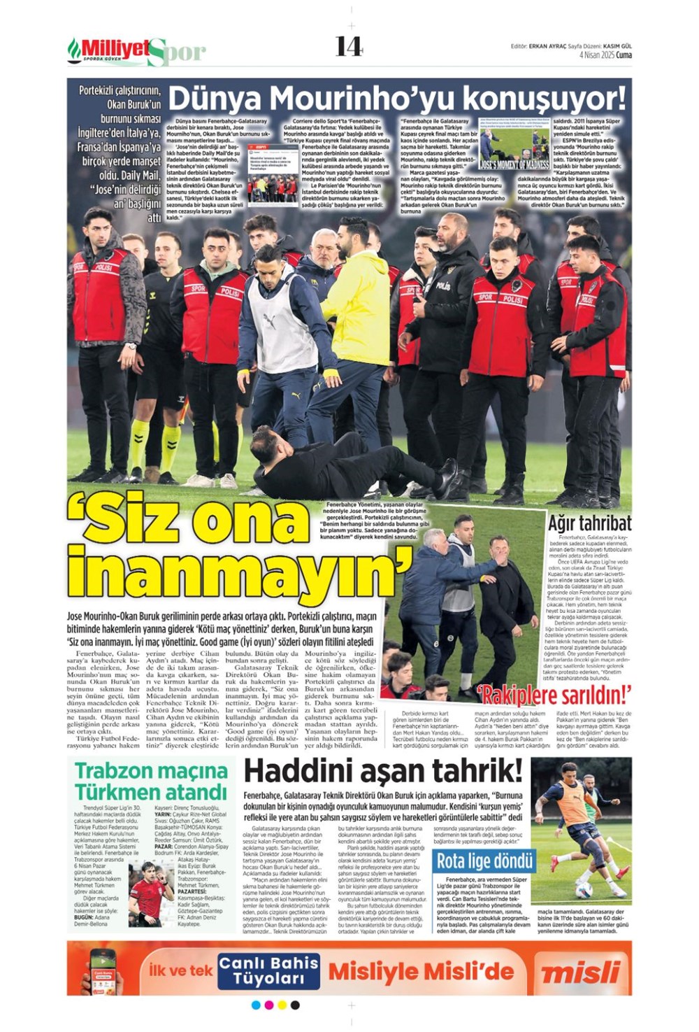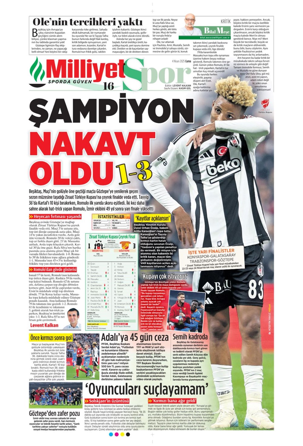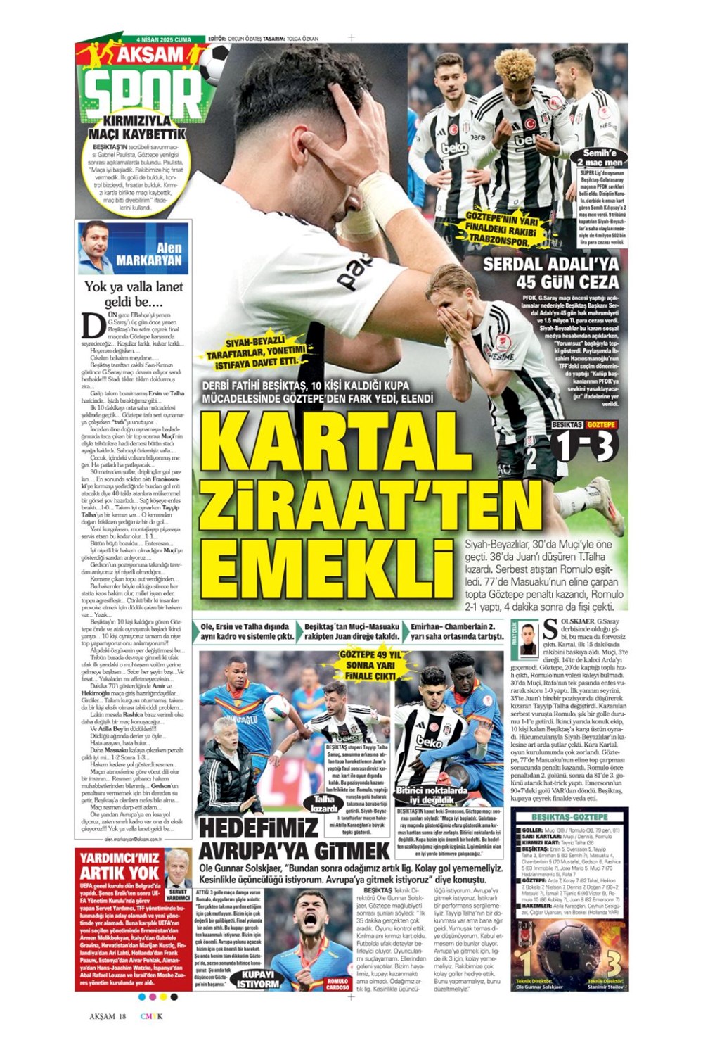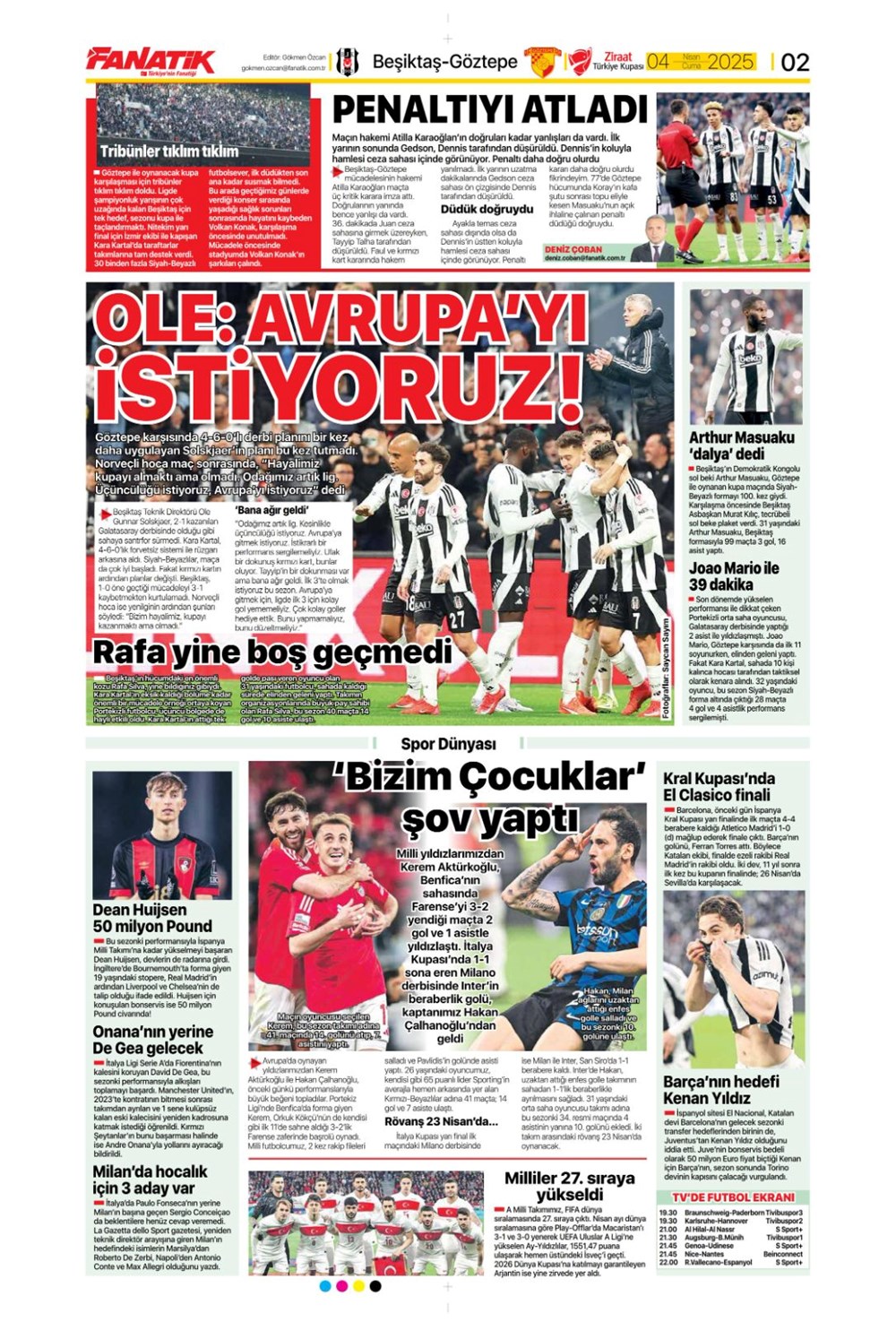 SPORKARTAL EFSANESİ SON KEZ SAHADA: UNUTULMAZ VEDA GECESİ! Son güncelleme: Nisan 4, 2025 7:51 am Yayımlandı: Nisan 4, 2025 Paylaş 0 Dakika Okuma Paylaş Fenerbahçe Beko-Kızılyıldız basketbol maçı ne vakit, saat kaçta ve hangi kanalda? Wimbledon: Dünya 2 numarası Alcaraz son 16’da Beşiktaş Konya’da Diriliyor mu? Kartal’ın Muhtemel 11’i Sahada! Galatasaray’da Muslera’dan sonra yeni isim: Ederson teklifi ortaya çıktı Alvaro Morata’dan Türkiye Bombası: “Konuşmak İçin Ülkeden Gitmem Gerek! Fenerbahçe, Galatasaray, Mourinho ve O Polis Ordusu…” Bu Makaleyi Paylaş Facebook Bağlantıyı Kopyala Yazdır Paylaş Önceki Makale Gazze’de Açlık Alarm Zilleri: Son Un Kırıntıları da Tükendi! Sonraki Makale Güney Kore Cumhurbaşkanı Yoon Suk Yeol Görevden Alınma Kararıyla Karşı Karşıya Yorum yapılmamış Yorum yapılmamış Bir yanıt yazın Yanıtı iptal etE-posta adresiniz yayınlanmayacak. Gerekli alanlar * ile işaretlenmişlerdirYorum *Ad * E-posta * İnternet sitesi Daha sonraki yorumlarımda kullanılması için adım, e-posta adresim ve site adresim bu tarayıcıya kaydedilsin. Takip EdinXTakip EtInstagramTakip EtTelegramTakip Et - Reklam -Son Haberler Ankara’da kan donduran olay. Annesini, kızını ve eşini öldürüp intihar etti GÜNDEM Şubat 10, 2026 Dereye uçan arabadaki 2 kız kardeş hayatını kaybetti. Kaçan şoför yakalandı GÜNDEM Şubat 9, 2026 Rap dünyasında “Malatyalıyım” çıkışı: Uzi’den “Şeytan” iddialarına sert tepki! MAGAZİN Şubat 9, 2026 Gülşen’den Şaşırtan “Soyadı” Hamlesi: Tam 10 Yıl Sonra Bir İlk! MAGAZİN Şubat 9, 2026