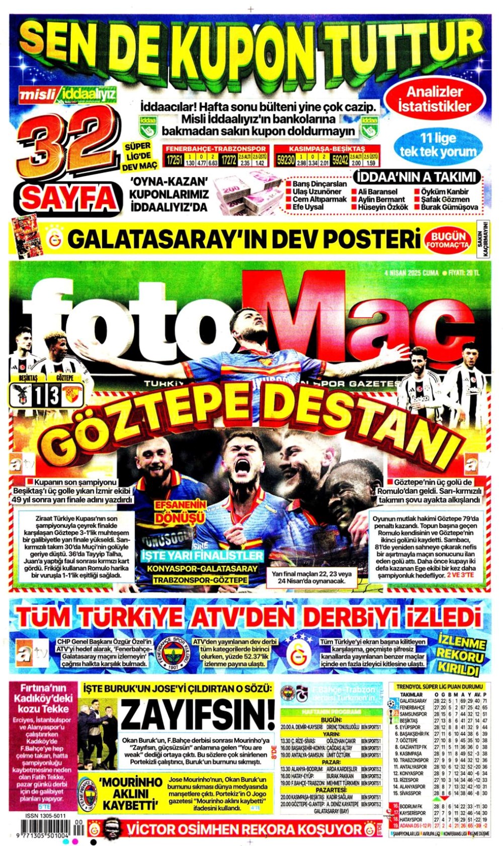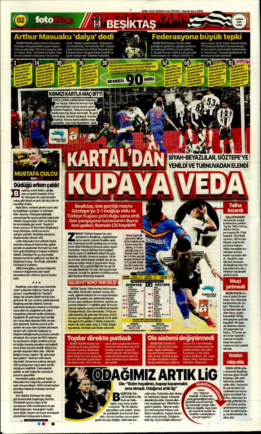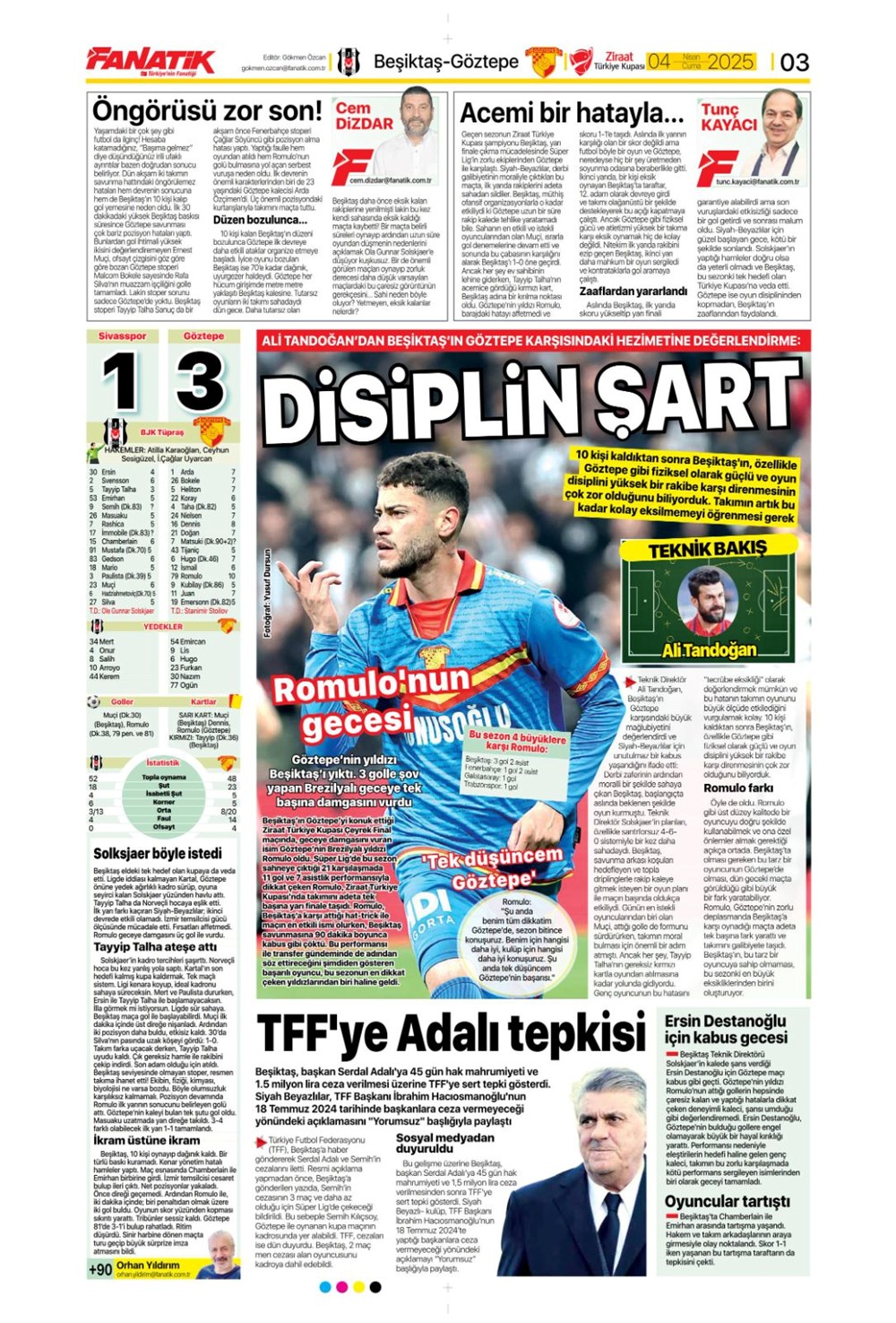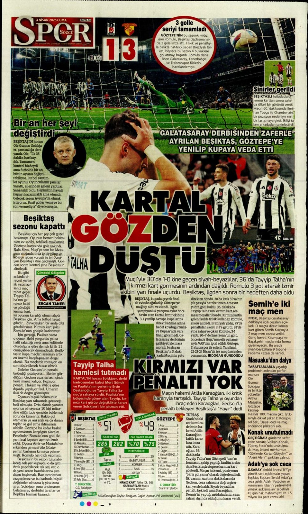 SPORKARTAL EFSANESİ SON KEZ SAHADA: UNUTULMAZ VEDA GECESİ! Son güncelleme: Nisan 4, 2025 7:51 am Yayımlandı: Nisan 4, 2025 Paylaş 0 Dakika Okuma Paylaş Fenerbahçe Beko-Kızılyıldız basketbol maçı ne vakit, saat kaçta ve hangi kanalda? Wimbledon: Dünya 2 numarası Alcaraz son 16’da Beşiktaş Konya’da Diriliyor mu? Kartal’ın Muhtemel 11’i Sahada! Galatasaray’da Muslera’dan sonra yeni isim: Ederson teklifi ortaya çıktı Alvaro Morata’dan Türkiye Bombası: “Konuşmak İçin Ülkeden Gitmem Gerek! Fenerbahçe, Galatasaray, Mourinho ve O Polis Ordusu…” Bu Makaleyi Paylaş Facebook Bağlantıyı Kopyala Yazdır Paylaş Önceki Makale Gazze’de Açlık Alarm Zilleri: Son Un Kırıntıları da Tükendi! Sonraki Makale Güney Kore Cumhurbaşkanı Yoon Suk Yeol Görevden Alınma Kararıyla Karşı Karşıya Yorum yapılmamış Yorum yapılmamış Bir yanıt yazın Yanıtı iptal etE-posta adresiniz yayınlanmayacak. Gerekli alanlar * ile işaretlenmişlerdirYorum *Ad * E-posta * İnternet sitesi Daha sonraki yorumlarımda kullanılması için adım, e-posta adresim ve site adresim bu tarayıcıya kaydedilsin. Takip EdinXTakip EtInstagramTakip EtTelegramTakip Et - Reklam -Son Haberler Ankara’da kan donduran olay. Annesini, kızını ve eşini öldürüp intihar etti GÜNDEM Şubat 10, 2026 Dereye uçan arabadaki 2 kız kardeş hayatını kaybetti. Kaçan şoför yakalandı GÜNDEM Şubat 9, 2026 Rap dünyasında “Malatyalıyım” çıkışı: Uzi’den “Şeytan” iddialarına sert tepki! MAGAZİN Şubat 9, 2026 Gülşen’den Şaşırtan “Soyadı” Hamlesi: Tam 10 Yıl Sonra Bir İlk! MAGAZİN Şubat 9, 2026
