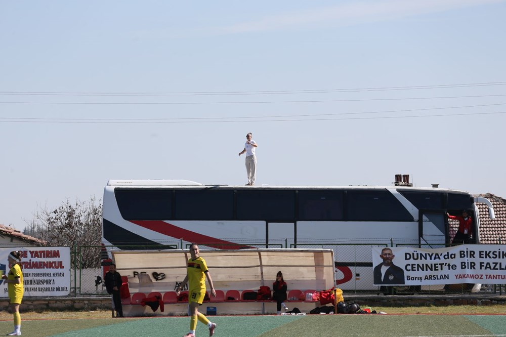 Türkiye Futbol Federasyonu (TFF) Kadınlar 2. Ligi’nde mücadele veren Eskişehirspor’un teknik direktörü Pınar Konca, aldığı ceza sebebiyle stadyuma giremeyince, takımını otobüsün tepesinden yönetti.