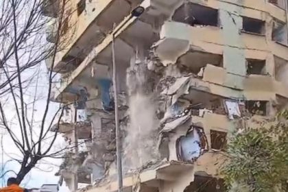 İstanbul Bağcılar’da kentsel dönüşüm kapsamındaki 8 katlı binanın kolonları kırıldıktan sonra denetimli…