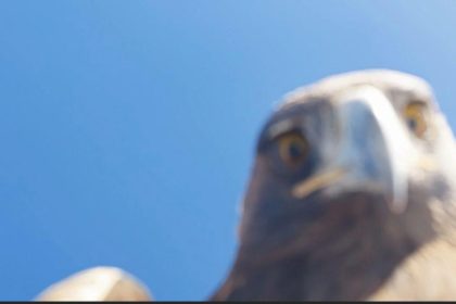 Kartal çekim yapan dronu kapıp dağın tepesine bıraktı